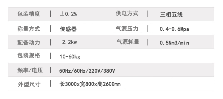 粉末包裝秤技術參數:
