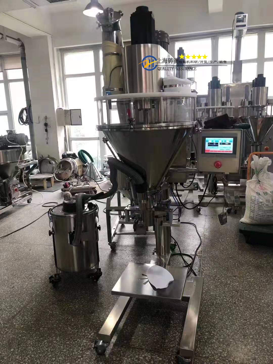 上海鑄衡工廠生產的這臺螺旋定量包裝秤采用絞龍下料結構,具有結構合理,造型美觀,運行平穩,節能省電,操作方便,稱重準確的特點,包裝秤適合包裝礦粉、石灰粉、滑石粉、尿素、肥料、面粉、化肥、無機鹽,水泥、米糠、淀粉等粉劑狀定量包裝。