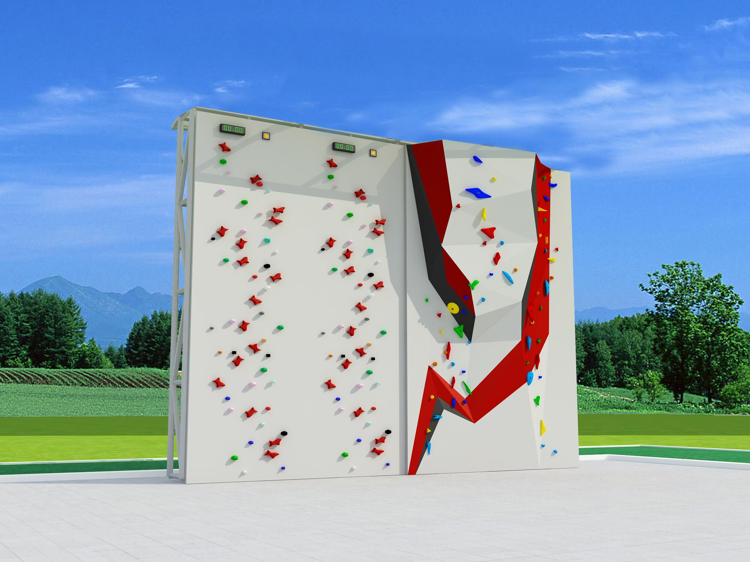 1、戶外拓展基地的攀巖墻一般是建造在室外。比如攀巖建在戶外要特別注意支撐整個攀巖的鋼結(jié)構(gòu),因為戶外風(fēng)吹日曬的鋼結(jié)構(gòu)框架沒有遮擋如果油漆破了容易被腐蝕,所以要經(jīng)常檢查鋼結(jié)構(gòu)連接處是否出現(xiàn)掉漆現(xiàn)象,如果有掉漆就會產(chǎn)生出現(xiàn)銹跡的問題,發(fā)現(xiàn)問題及時打磨補漆處理。