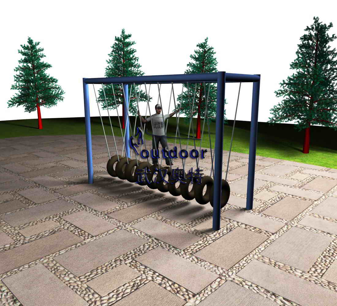 拓展設(shè)施產(chǎn)品介紹:一座由懸吊輪胎組成的橋面,多人或單人體驗(yàn)。
