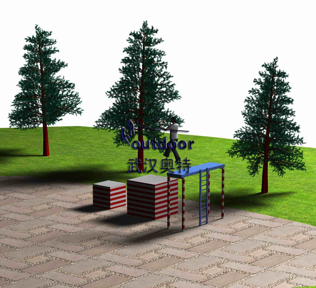 拓展設施產(chǎn)品介紹:高低兩座平臺,參與者需一一穿越過去。