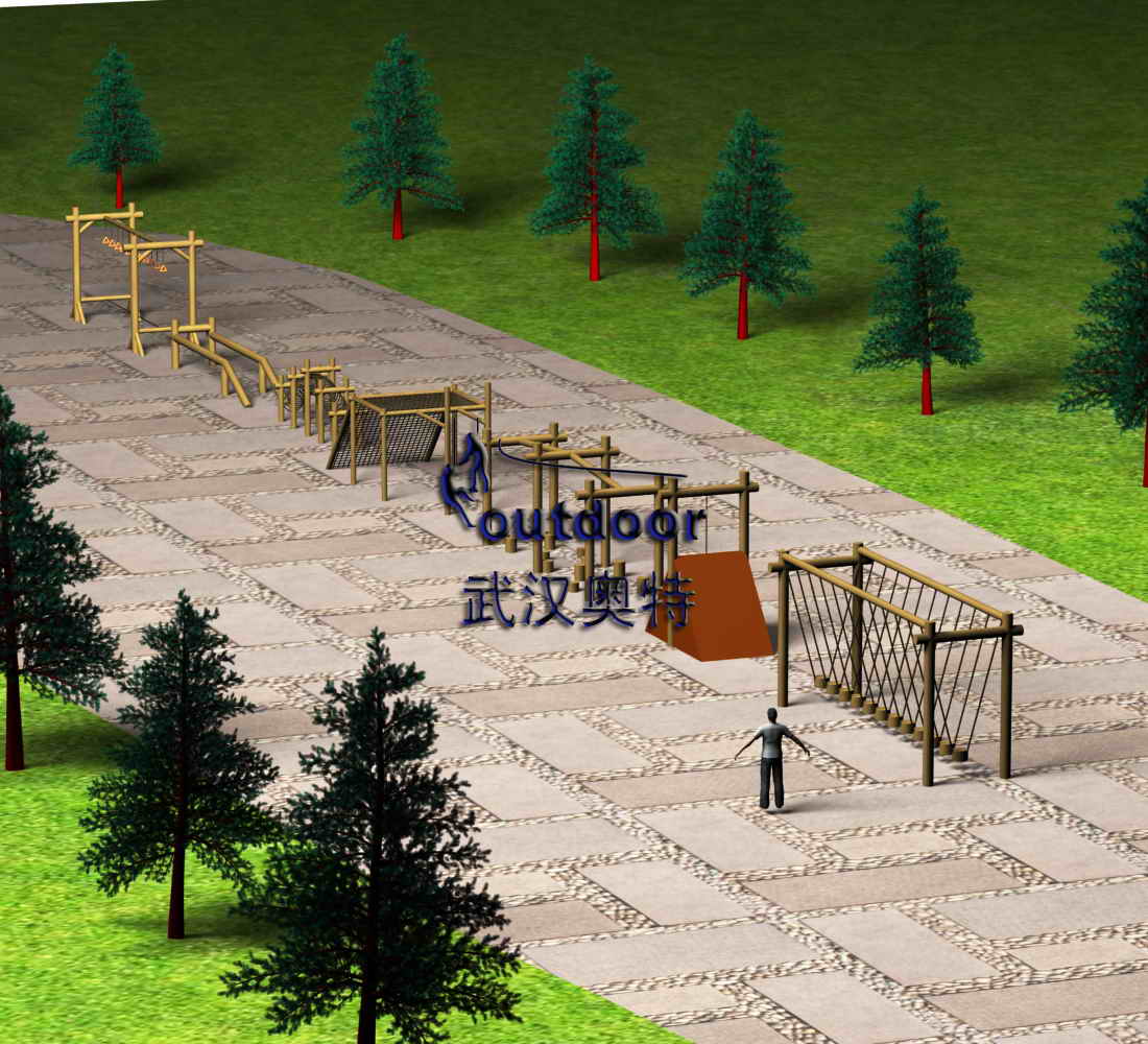 拓展設施主要材料:國標鋼管、鋼芯鋼纜、防腐木、連接件