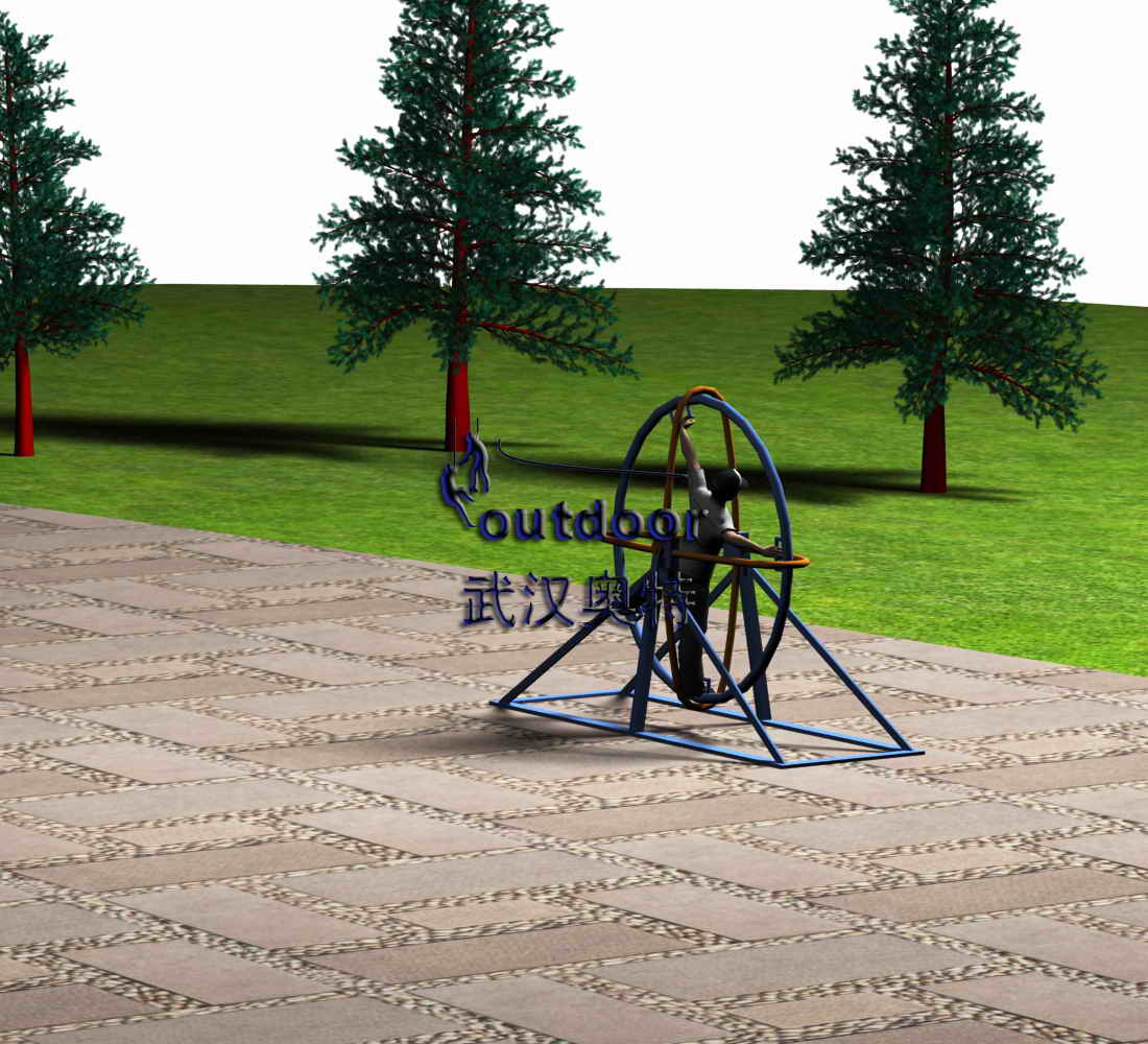 操作者站到鋼圈上,手握手環,利用重力旋轉身體。